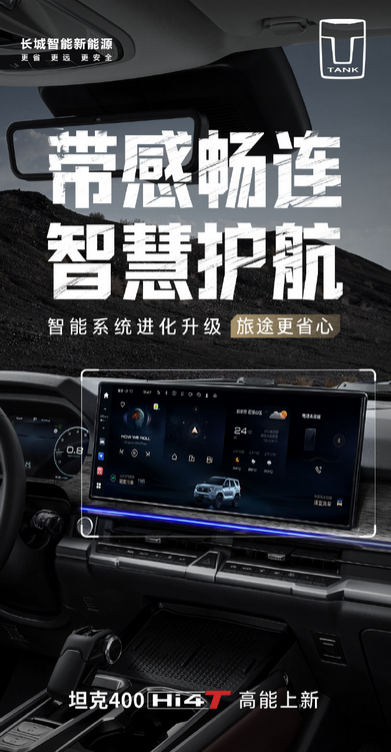除了动力系统调整外,坦克400 Hi4-T还将升级新一代智能车机系统。