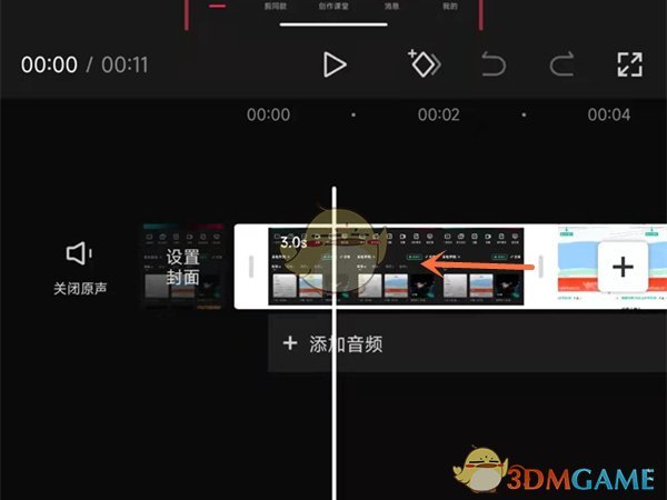 2.添加素材后,点击一张照片并向左滑动照片后面的白色框。