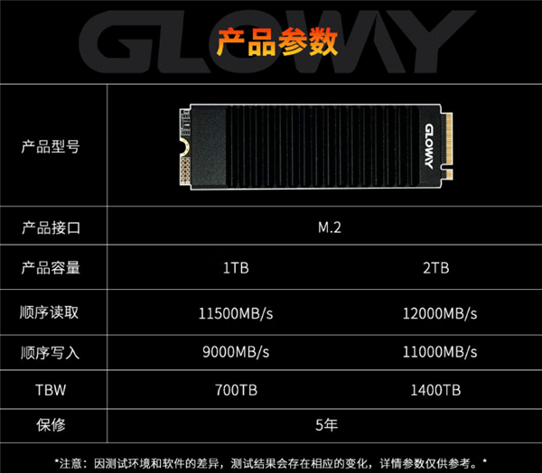 1TB版本可实现11500MB/s顺序读取速度和9000MB/s顺序写入速度,2TB版本则提升至连续读取速度12000MB/s,连续写入速度11000MB/s。