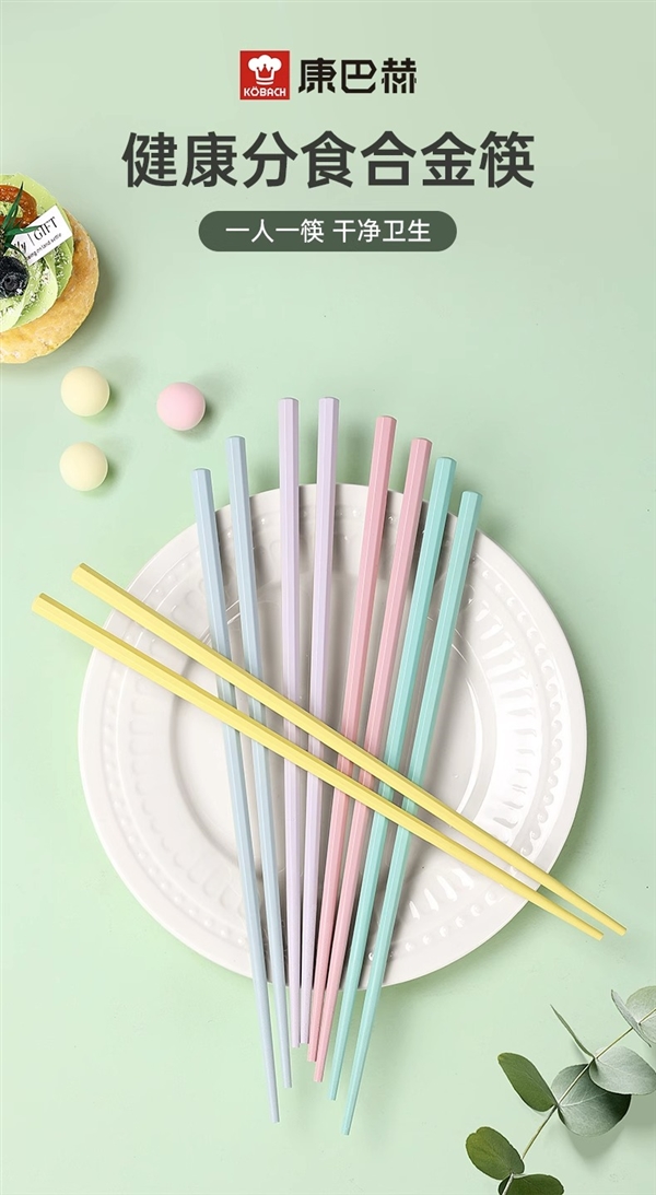 天猫康巴赫餐饮具旗舰店,康巴赫马卡龙合金筷5双日常售价29.9元,券后仅需9.9元包邮。