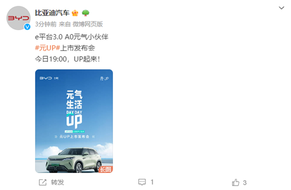 3月26日消息,比亚迪全新纯电动SUV元UP将于今晚上市(将全程直播:戳链接预约观看),其定位于小型车,售价或锚定10万级。