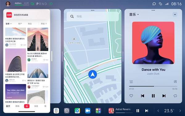 手机只提供算力,其余显示、声音和交互都在车机上执行,中控屏上的App不是简单的投屏,而是可以独立操作,这给了车机使用手机全部生态应用的潜力。