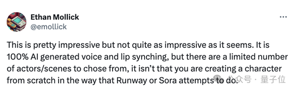 有业内人士点出,这是100%AI生成的语音和口型同步,而且可供选择的演员和场景有限。