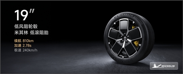 据了解,19英寸低风阻轮毂+米其林低滚阻轮胎适合追求极致续航的用户。