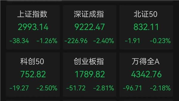 3月27日,上证指数收跌1.26%,最新指数跌破3000点整数关口。截至收盘,超4700股飘绿,飘红股不足600只。前期热炒的题材如铜缆高速连接、算力租赁、小米汽车、华为算力、东数西算跌幅靠前。铜缆高速连接指数跌幅最大,概念股胜蓝股份、奥飞数据、鼎通科技、创益通、维峰电子跌超10%。