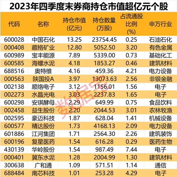 随着上市公司2023年年报陆续披露,券商持仓股逐渐浮出水面。