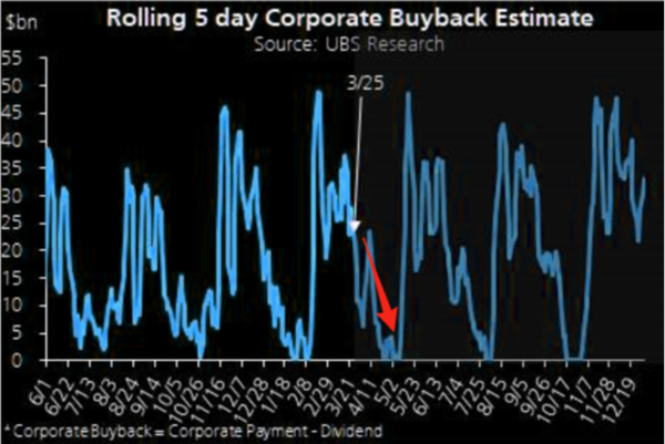 值得注意的是,当前美股市场上最大的买入主力企业回购,正处于关闭期。