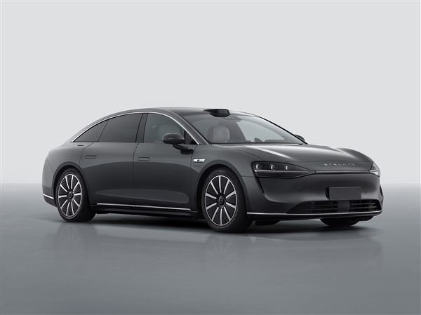 侧面车门面板与前后翼子板上没有采用过多的线条设计,搭配隐藏式门把手以及封闭式轮圈,稳重大气,行政感拉满,而车顶的激光雷达预示着它在高阶智驾方面有着不俗的表现。