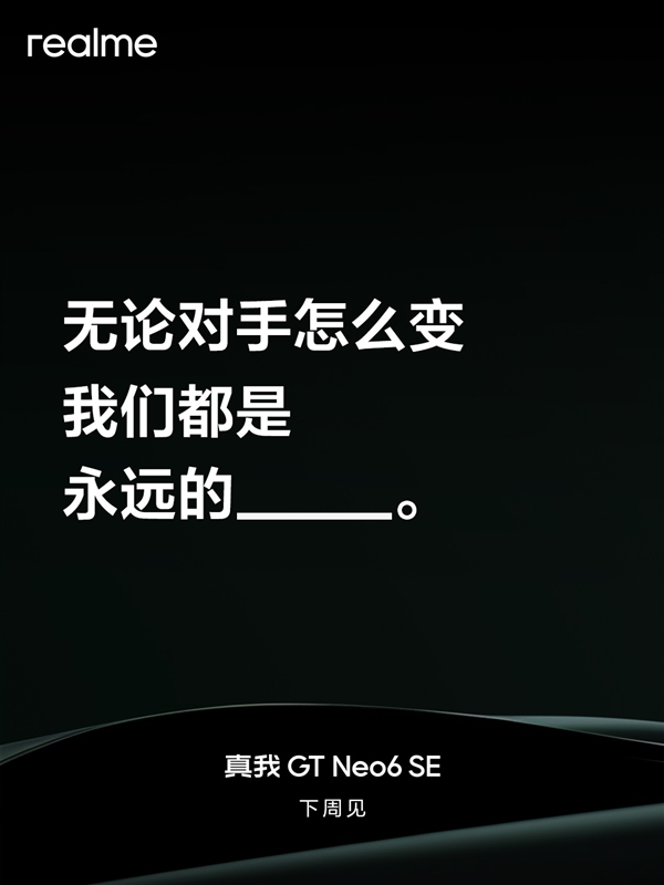 4月1日消息,今天,realme的徐起预告称,真我GT Neo6 SE将在下周正式官宣,并且强调无论对手如何变化,真我始终是旗舰射门员。