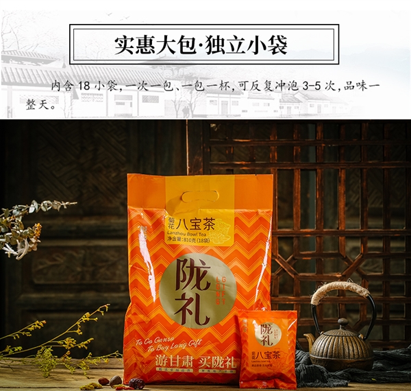天猫陇萃堂食品旗舰店,陇萃堂八宝茶(三炮台)810g售价32.8元,限量15元券,实付17.8元。
