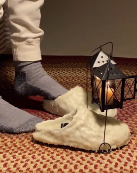 为了让女朋友晚上上厕所方便,他设计了「蜡烛拖鞋」: