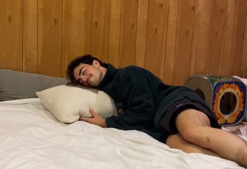 比如这位手工鬼才@fitz_reilly,我愿称他为互联网第一深情。由于他害怕女友异地寂寞,于是想到了一个极为离谱的点子,那就是用自己的胸毛给女友做一个枕头。