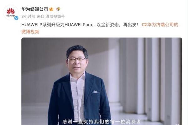 4月15日,余承东宣布华为P系列升级为华为Pura,以全新姿态再出发,锐意向前。