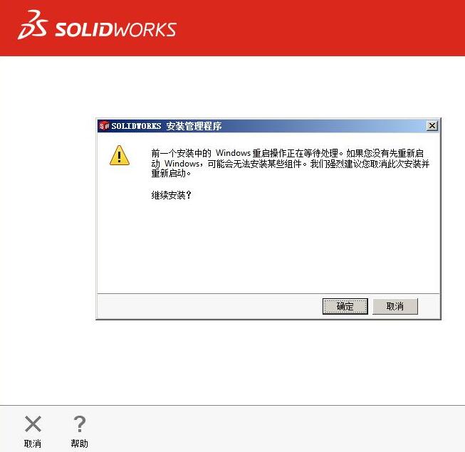 1、使用虚拟光驱加载solidworks.2020.SP0.Full.Premium.DVD.iso或解压,双击setup.exe,出现如图提示,点击确定