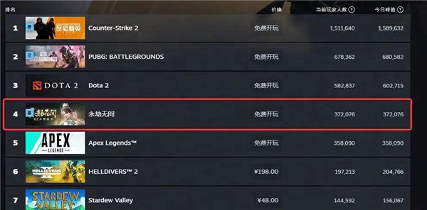 而Steam的数据于4月11日新赛季开启当日再次刷新,玩家同时在线人数突破37万,超越《Apex》,来到榜单第四。