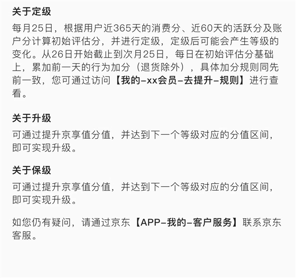 本次升级暂不影响京享值的计算方式,仅将京享值分值与会员等级进行映射,同时可能会对升级后部分权益进行调整。
