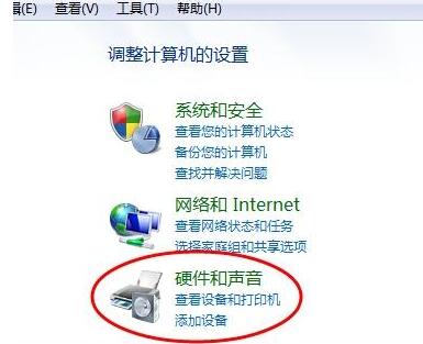 2.在打开的控制面板界面中找到硬件和声音选项。