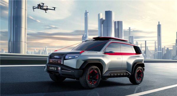 SUPER 3官方定义是潮玩专家,从展出的非量产版实车来看,新车是一款中型SUV。