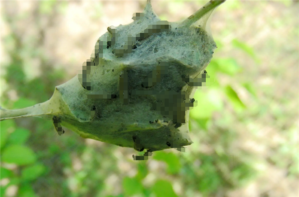 从它产卵的方式来看,天幕毛虫是很容易扎堆的,一扎堆,就很容易出现天幕一样的丝网。