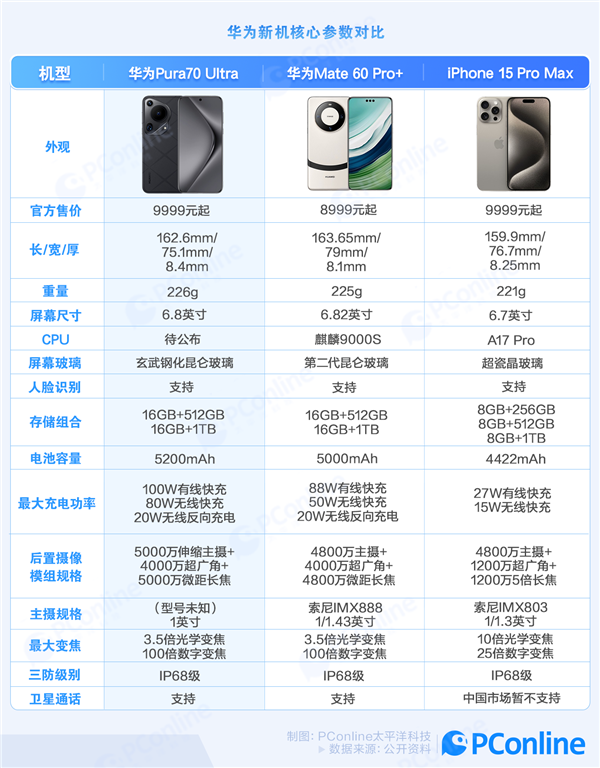 相比华为Mate 60 Pro+和iPhone 15 Pro Max,华为Pura70 Ultra的配置和功能都可圈可点,而去年Mate 60系列的热卖也证明了华为在手机市场的号召力。