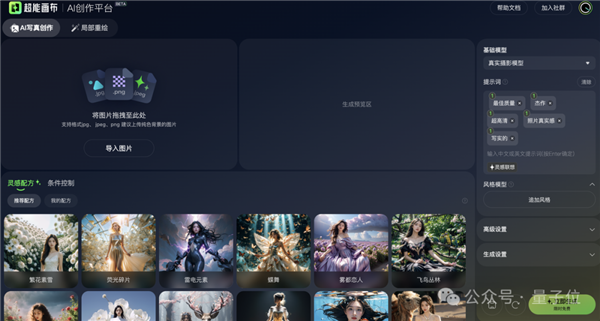 接下来,界面右侧可选的基础模型有真实摄影模型、胶片摄影模型两种。前者偏真人写实风格,注重细节;后者包含景深效果,注重氛围感。