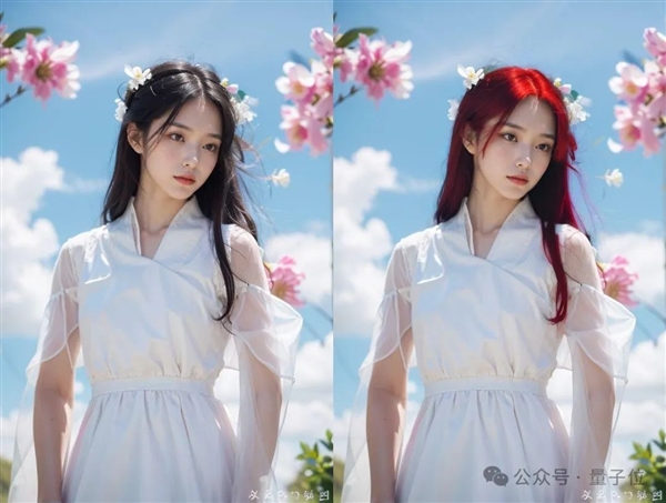 深入体验一番,原来这个AI不仅可以全图修还能局部修,一键换发色也是可以的: