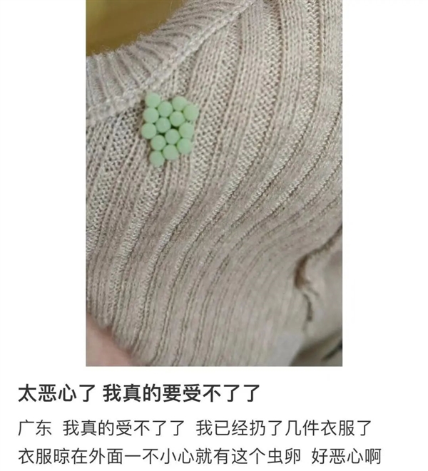 所以在收衣服的时候,如果发现虫卵,可以用刷子或牙签,把黏在衣服的虫卵处理掉。