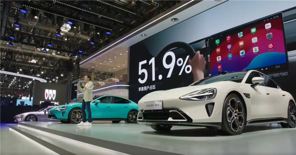 4月25日消息,在今天北京车展的小米SU7发布会上,雷军透露了一个惊人数据:小米SU7车主中,苹果用户占比51.9%。