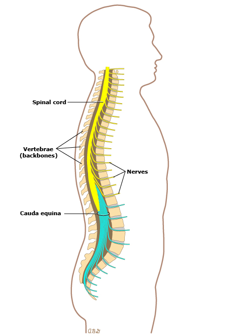 我们的脊柱由 7 节颈椎、12 节胸椎、5 节腰椎以及骶骨和尾骨构成。在脊柱的椎管内容纳着脊髓神经。