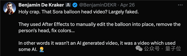 尽管OpenAI一开始就介绍了,《气球人》这样的短片出自艺术家团队之手,他们只是把Sora开放给了艺术家使用,但官方并未提及短片具体是如何制作而成的。
